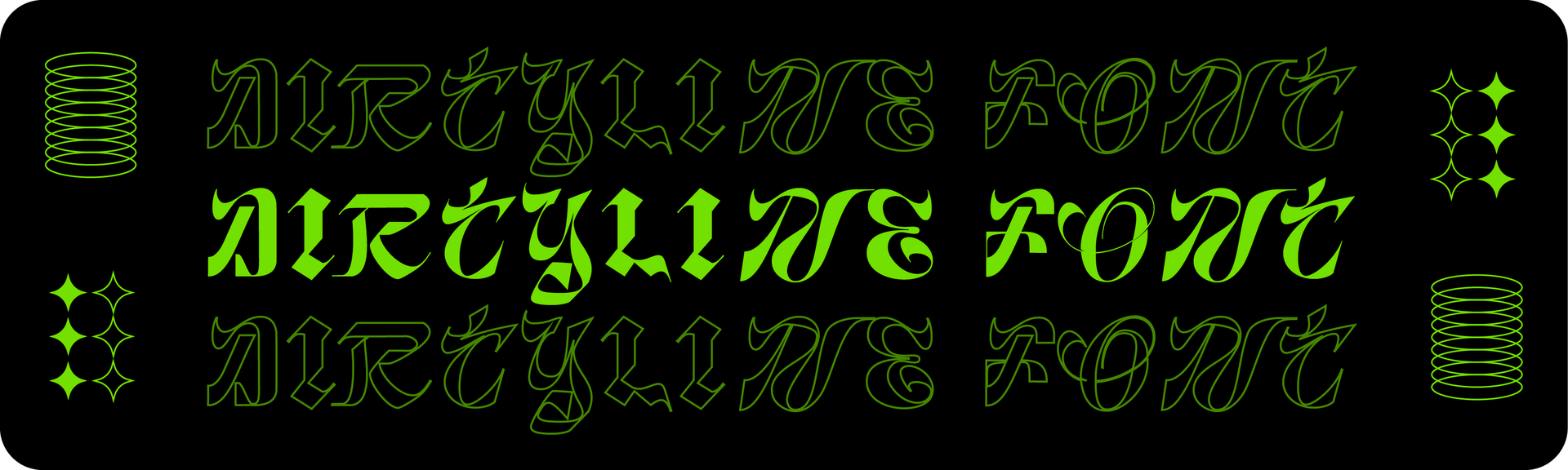 Dirtyline 字體的大寫字母充滿了裝飾性,筆劃帶有誇張的變形和連字效果,呈現出強烈的視覺張力和衝擊感由於其較難閱讀,因此不太適合用於需要大量文字的內容或平面廣告中。