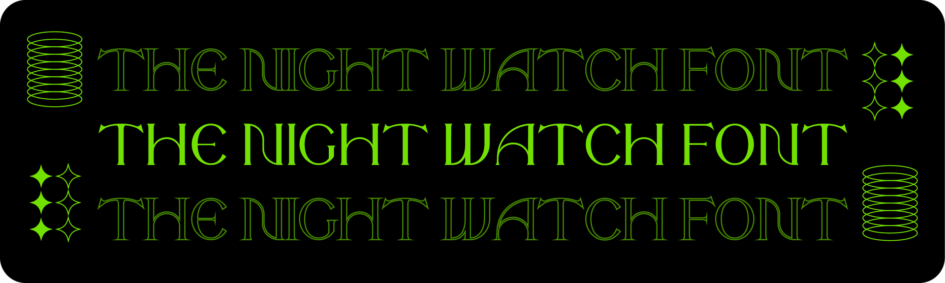 此字體的設計靈感來自名畫《夜巡》(The Night Watch),並以此命名。適當的筆劃變形增加了字型的豐富性,搭配圓潤的外觀和襯線字,給人精美、精緻的印象。