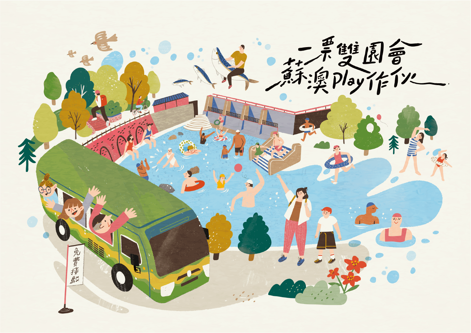 「一票雙園會:蘇澳作伙 Play」,這張圖就應用了在舞台背板上,這就是需要使用在大圖的案例呢!使用 Ai 的時候,我可以隨意調整圖像大小,確保在舞台上呈現的效果不被受限。