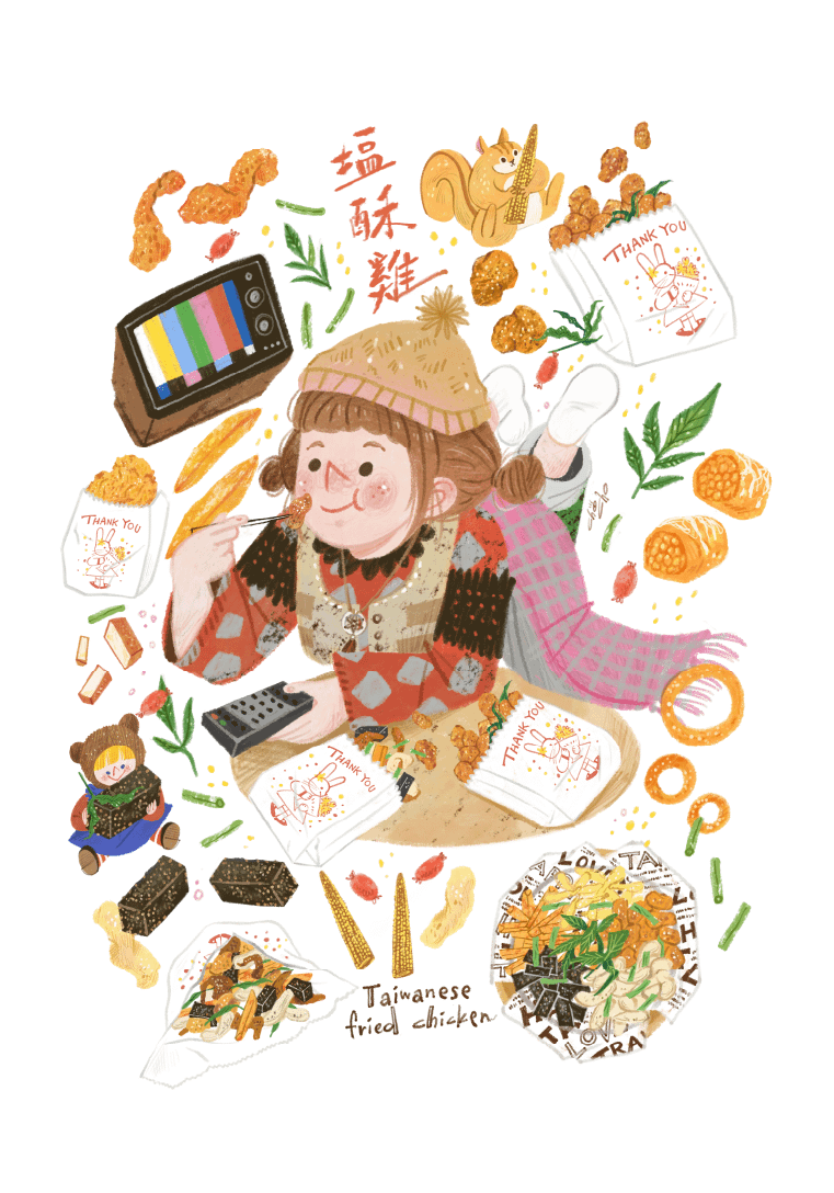此外,最近我正在創作一個叫做【雀斑女孩X台灣美食小吃】的系列,因為我本人是個美食愛好者,希望可以透過這個系列,帶著大家跟雀斑女孩一起探索、品嚐台灣最有特色的小吃。這也是我想向大家介紹台灣美食的方式,讓更多人了解台灣豐富又美味的文化!