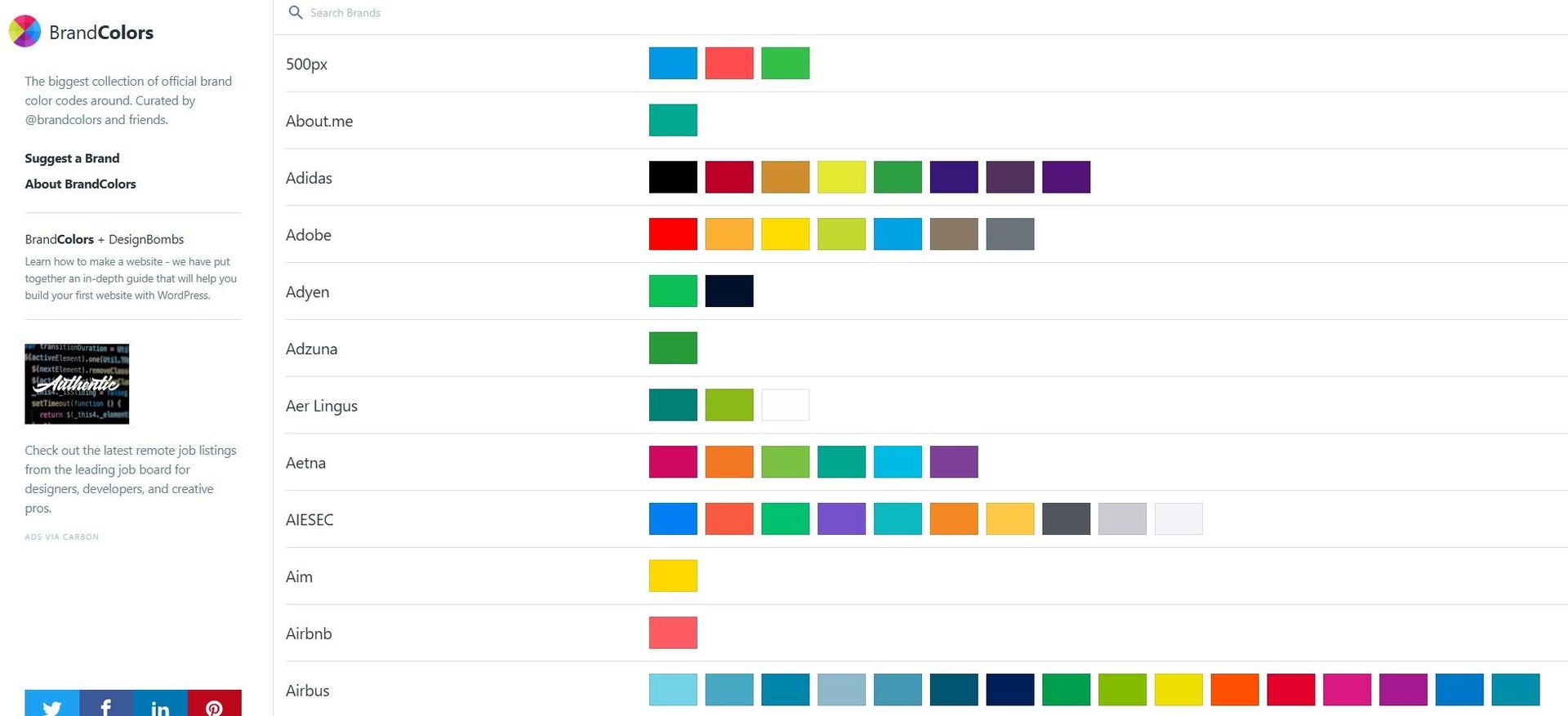 如果你想參考不同品牌怎麼搭配品牌色,可以透過 BrandColors 來獲得品牌配色靈感。