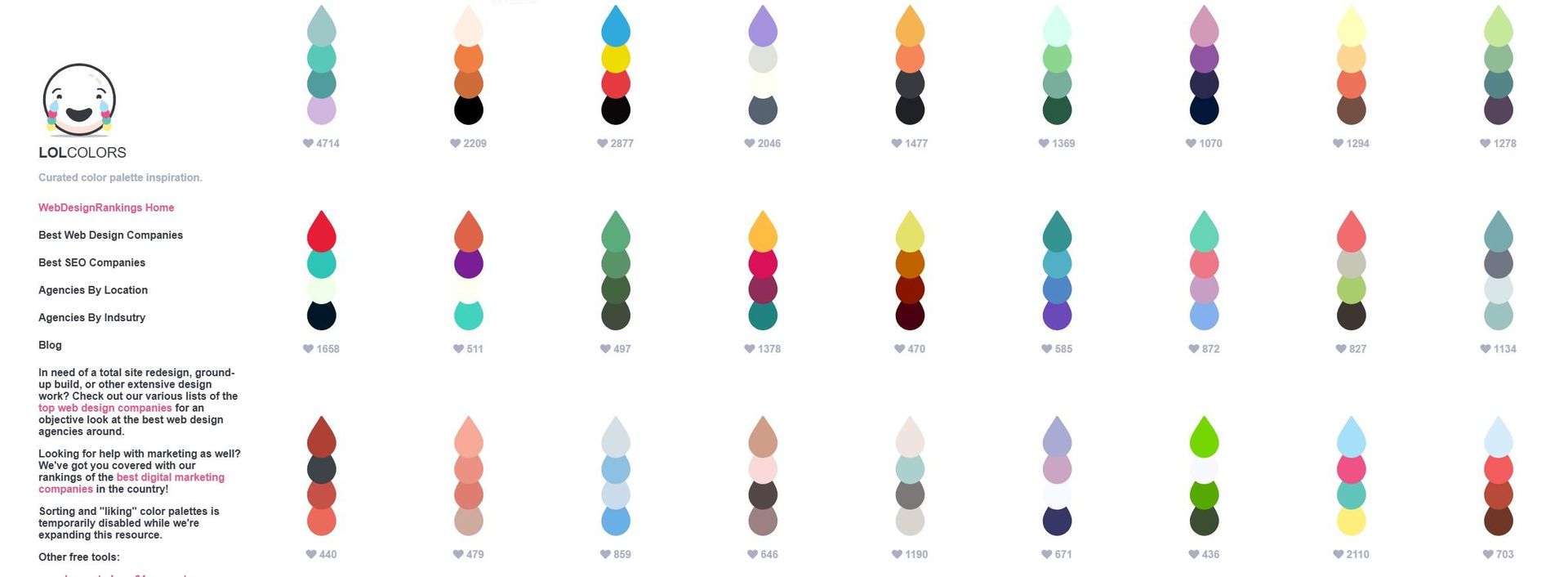 每組顏色搭配下方都會有愛心數,可以用來判斷哪些配色組合受人歡迎,雖然沒有太多功能,但簡潔直觀的介面也讓人可以快速瀏覽所有色彩搭配!