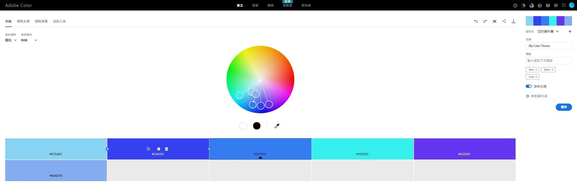 Adobe Color 是一個由 Adobe 公司開發的免費線上配色工具,我們可以使用色輪工具直接調出配色方案,也可以套用不同的配色規則,不需要死記硬背。