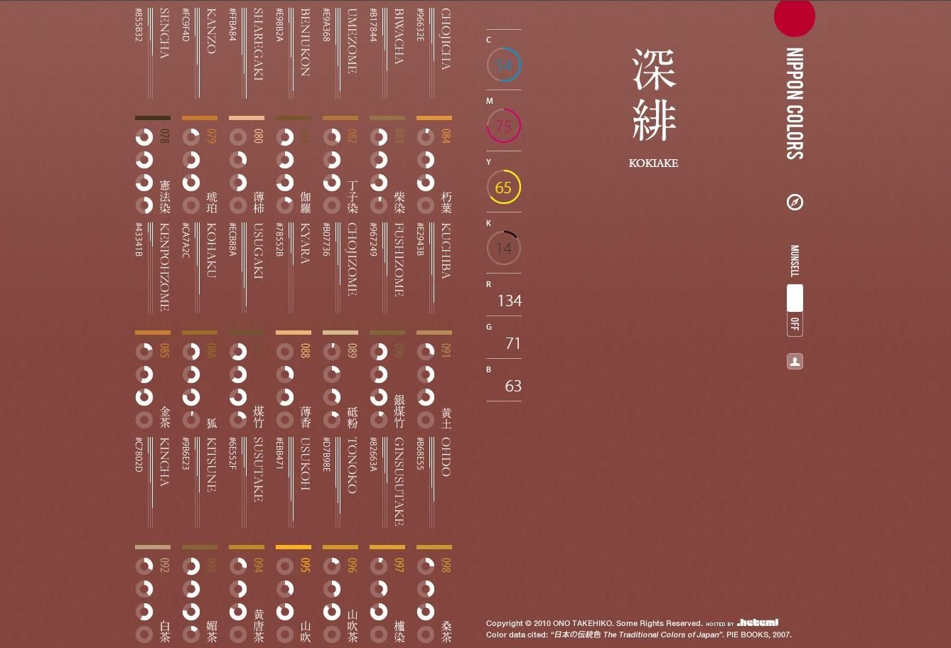 Nippon Colors 是一個介紹日本傳統色彩的網站。它收錄了約 250 種在日本文學、工藝及日常生活中常用的代表性顏色。只要點擊其中任何一種顏色,整個網站的背景就會立刻變成所選的顏色!