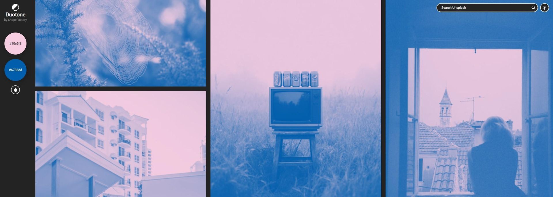 Duotone 為 ShapeFactory 系列工具之一,是專門做 duotone ( 雙色調 ) 效果的線上工具,可以使用範例圖像,也可以上傳自己的圖片來套用 duotone 雙色調效果!