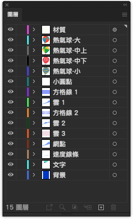 到這步驟已經原封不動把圖層匯入啦! Ai 圖層可連動原檔去做即時更新,但若是後來在 Ai 再新增的圖層並不會被讀取,需再匯入一次所有圖層,並刪除重複的圖層。