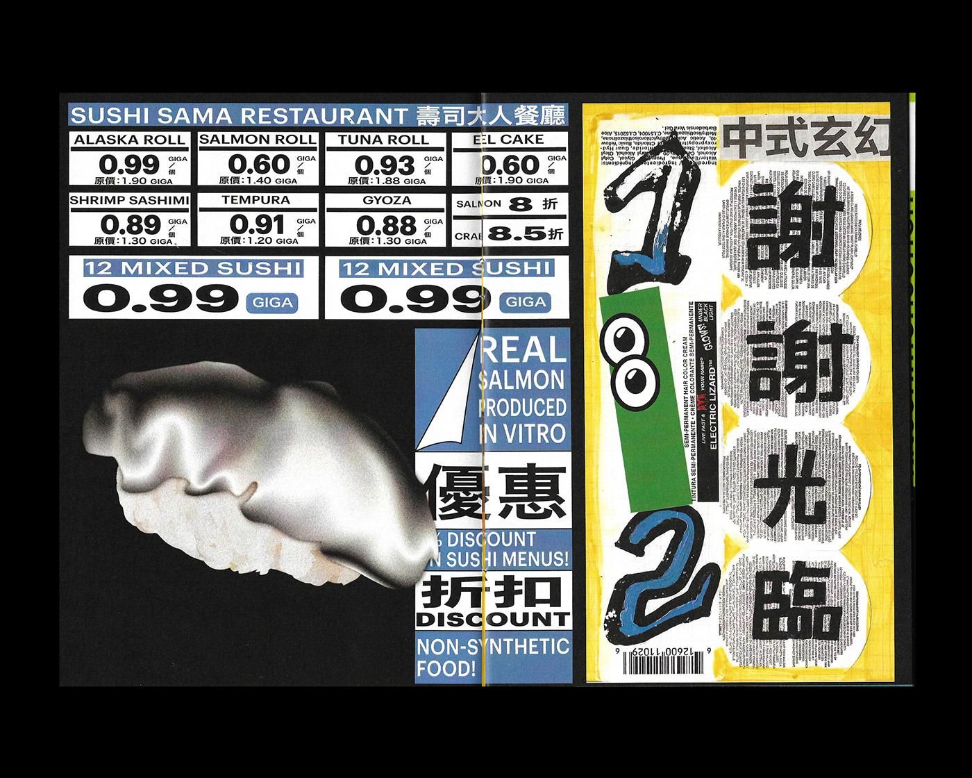 英國華裔設計師的 Can Yang,其作品受到新醜風的影響,並結合東西方文化的設計美學,加上街邊小巷的元素與拼貼技法,使得其作品具有獨特的視覺風格與趣味性。