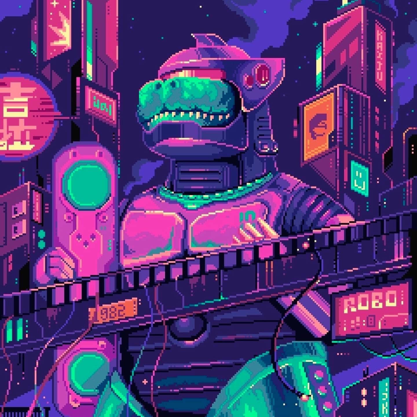 皮傑 Pixel Jeff 為台灣的像素插畫家,作品大多呈現出賽博龐克及蒸氣波的氛圍,利用復古的點陣像素創作作品,色彩繽紛,營造出一種強烈的衝突美。而創作主題多以 80 年代的經典科幻動畫、電影以及當年的流行文化為主,畫風細膩精緻,喜歡這類主題的一定也會喜歡皮傑 Jeff Pixel 的作品!