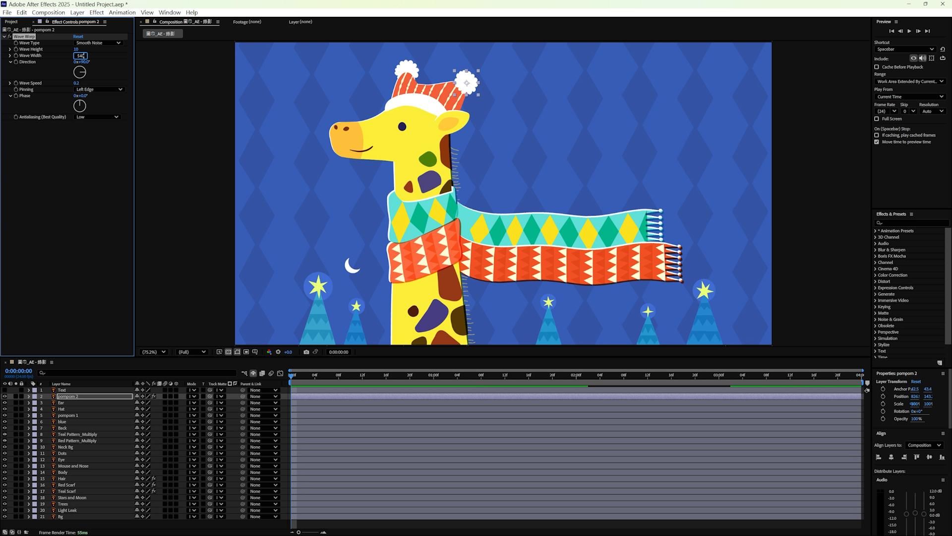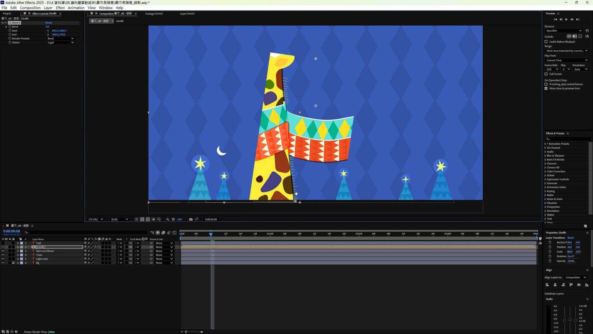 將整隻長頸鹿做預合成,並加上 Effect > Distort > CC Bend it