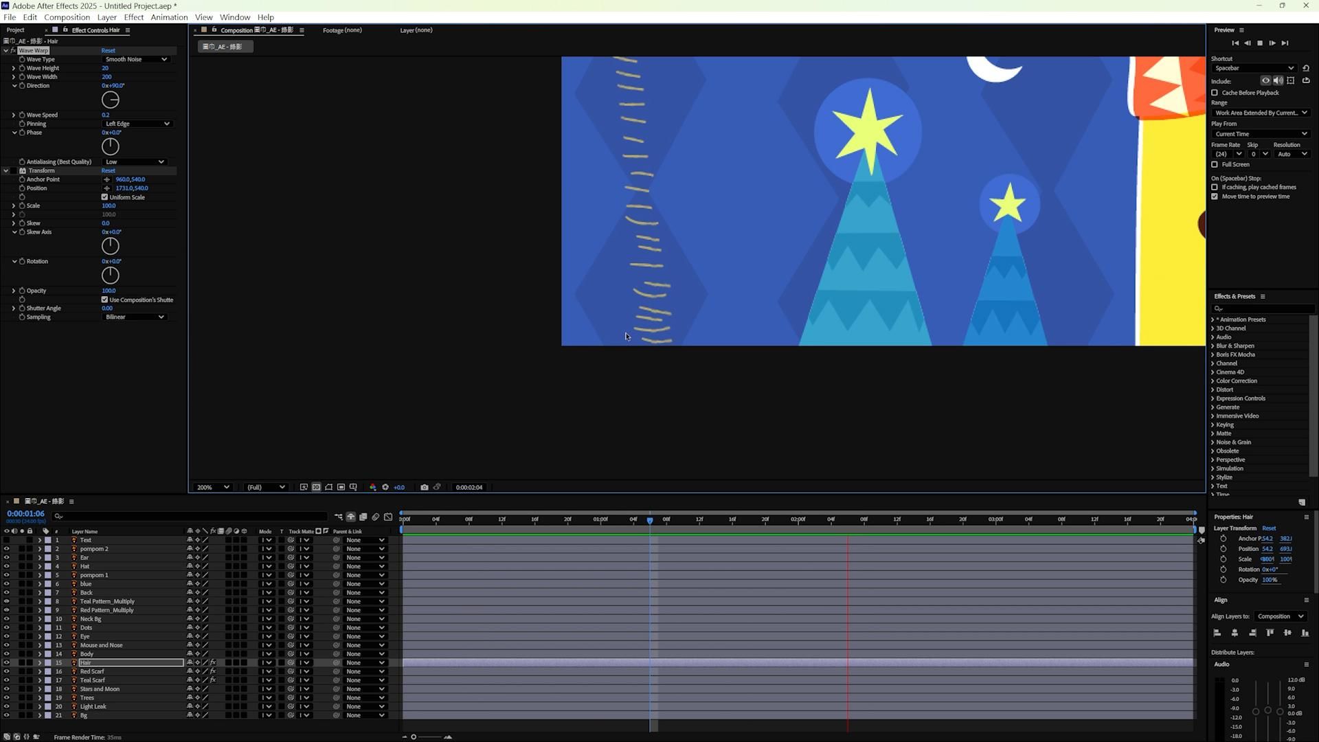 複製鬃毛的所有效果,貼到帽頂的絨球,將波高改為 10、波長改為 540,再貼到另一顆上 就完成了。