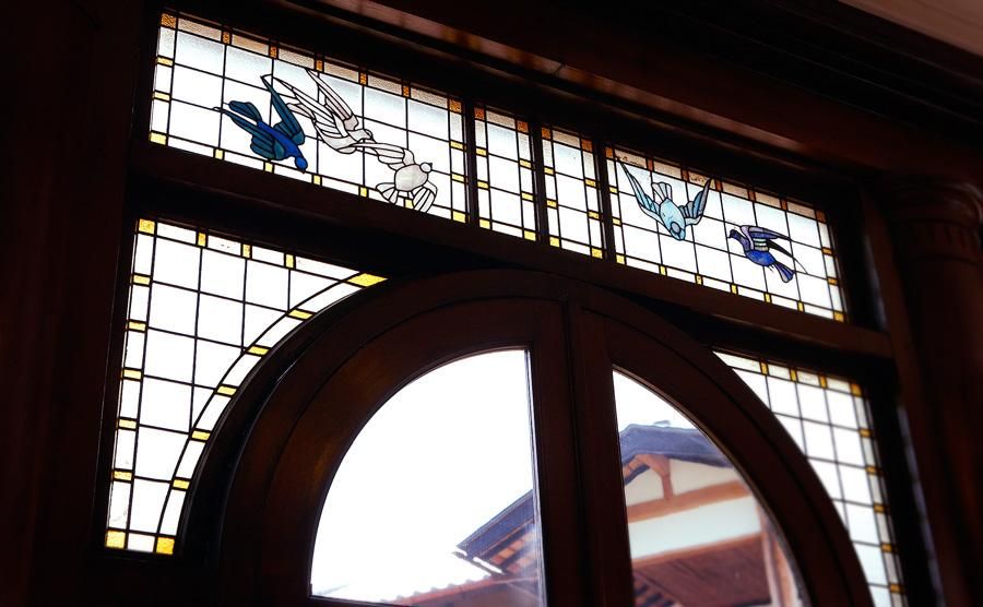 大正時代的日本建築具有鮮明的特色,基於日本和式結構,結合了洋式的落地玻璃推拉門,並使用了以紅、藍、黃等鮮豔色彩製作的玻璃窗,呈現出既時尚又復古的和洋相容風格。