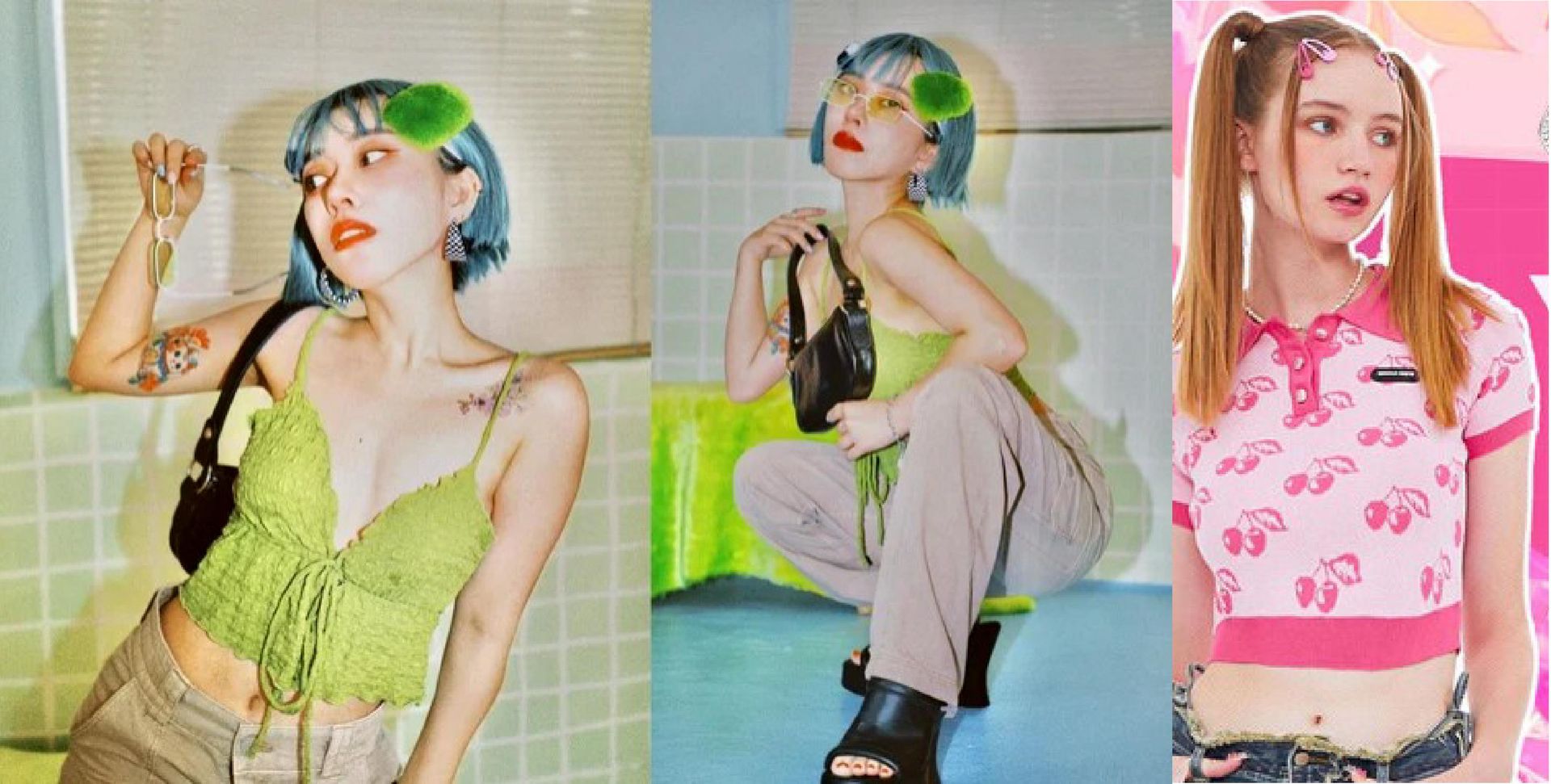短版上衣能展現出腰部曲線,通常與低腰牛仔褲一起搭配能更顯身材。若是短版上衣再加上印花,會更有 Y2K 的風格。